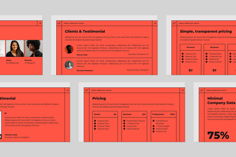 This template is minimal and clean-style PowerPoint presentation with unique slides (v.1.0), and it has a lot of features. Based on slide master which makes customization very easy. This template is suitable for those who want to show their business simply and interestingly. Of course, this template is a professional, minimal, and multipurpose design that can be used for any type of presentation. However, Ideal for corporate, personal, business strategy, marketing plan, pitch deck, professional use, and more.