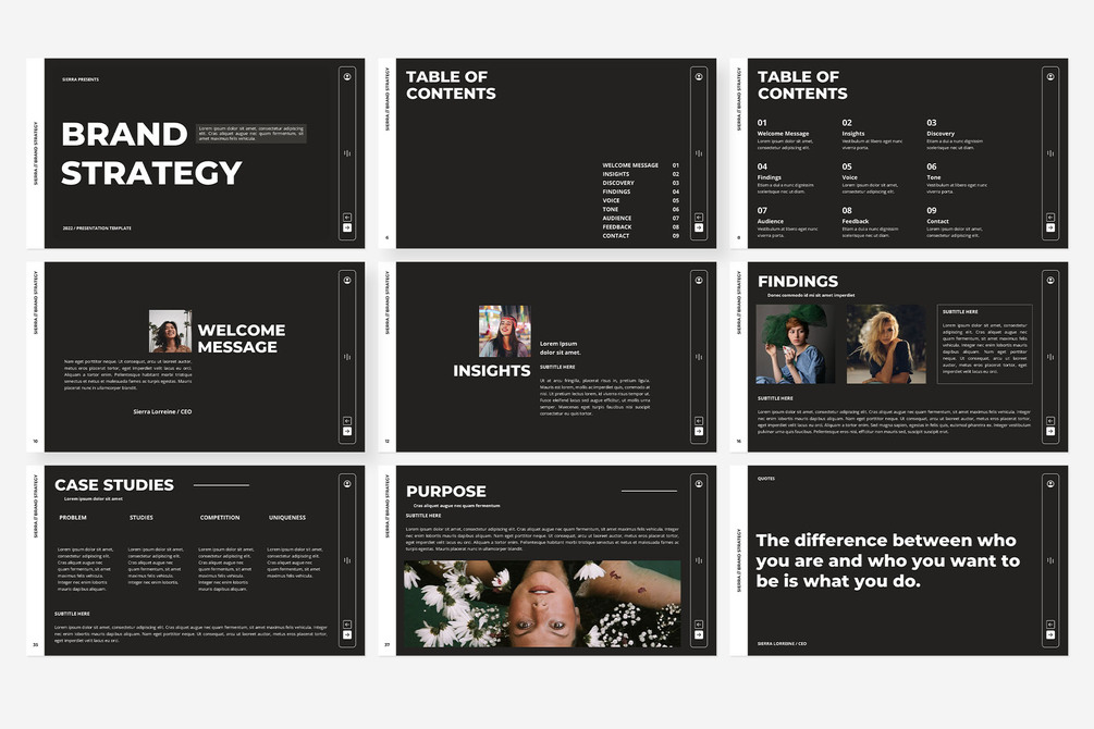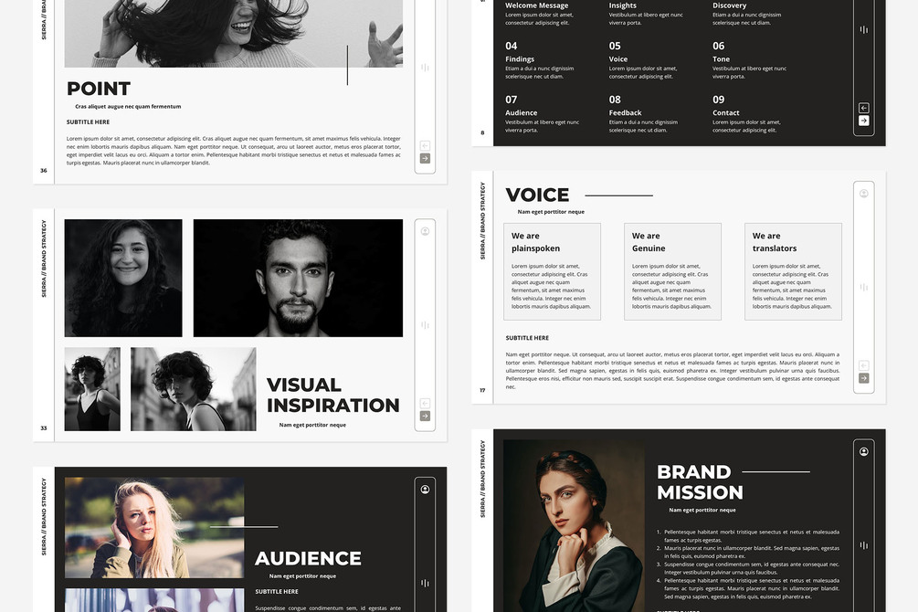 SIERRA is a minimal-style template for brand strategy. This template can help your customers express their values, personality, and positioning. This template is perfect for everyone starting their online business ventures such as designers, photographers, e-Commerce, fashion, bloggers, creative businesses, etc.