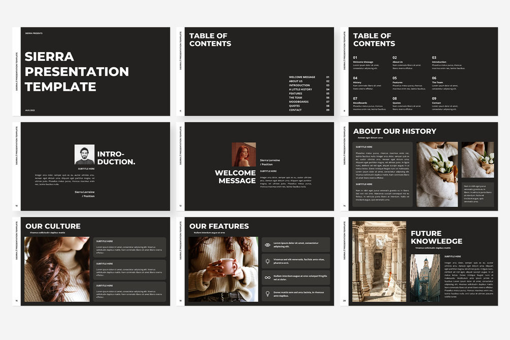 This template is a minimal and clean-style PowerPoint presentation with unique slides and it has a lot of features. It’s made with Slide Master which makes customization very easy. This template is suitable for those who want to show their business in a simple and interesting way. Ideal for business, corporate, marketing, personal, professional use, etc.