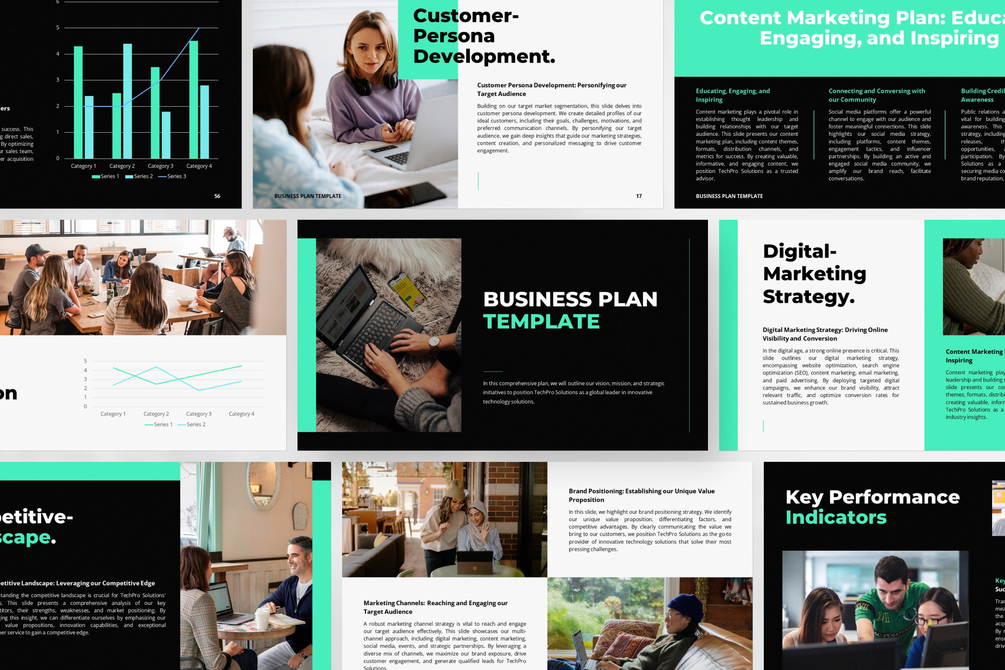 This template offers a variety of layouts and designs to ensure your presentation stands out. The template includes sections for an executive summary, market analysis, competitive landscape, sales objectives, marketing strategies, financial projections, and more, allowing you to convey your vision, market potential, and growth opportunities with clarity and professionalism.